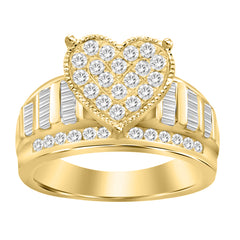 LADIES RING 1.00CT ROUND/BAGUETTE DIAMOND 10K YELLOW GOLD